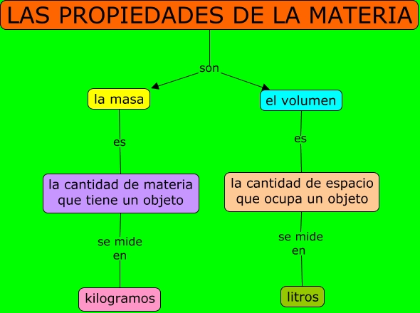 Este Cmap, tiene información relacionada con: Las propiedades de la materia, la cantidad de espacio que ocupa un objeto se mide en litros, el volumen es la cantidad de espacio que ocupa un objeto, la masa es la cantidad de materia que tiene un objeto, LAS PROPIEDADES DE LA MATERIA son la masa, LAS PROPIEDADES DE LA MATERIA son el volumen, la cantidad de materia que tiene un objeto se mide en kilogramos