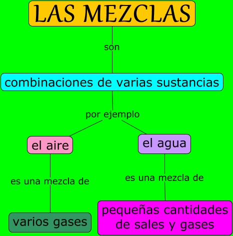 Este Cmap, tiene información relacionada con: Las mezclas, combinaciones de varias sustancias por ejemplo el aire, combinaciones de varias sustancias por ejemplo el agua, LAS MEZCLAS son combinaciones de varias sustancias, el aire es una mezcla de varios gases, el agua es una mezcla de pequeñas cantidades de sales y gases