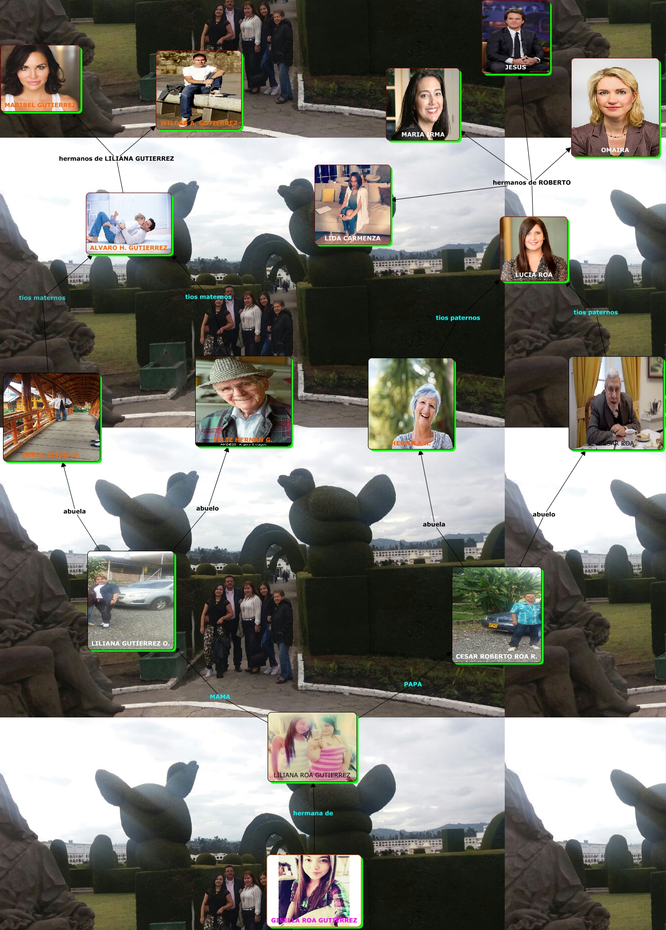 Este Cmap, tiene información relacionada con: arbol genealogico, LILIANA GUTIERREZ O. abuela BERTA ALICIA O., LILIANA GUTIERREZ O. abuelo FELIZ HERNAN G., BERTA ALICIA O. tios maternos ALVARO H. GUTIERREZ, HERMILA R. tios paternos LUCIA ROA, CESAR ROA tios paternos LUCIA ROA, LUCIA ROA hermanos de ROBERTO OMAIRA, ALVARO H. GUTIERREZ hermanos de LILIANA GUTIERREZ WILDER A. GUTIERREZ, CESAR ROBERTO ROA R. abuela HERMILA R., CESAR ROBERTO ROA R. abuelo CESAR ROA, LUCIA ROA hermanos de ROBERTO MARIA IRMA, LUCIA ROA hermanos de ROBERTO LIDA CARMENZA, ALVARO H. GUTIERREZ hermanos de LILIANA GUTIERREZ MARIBEL GUTIERREZ, LILIANA ROA GUTIERREZ MAMA LILIANA GUTIERREZ O., LUCIA ROA hermanos de ROBERTO JESUS, GISELLA ROA GUTIERREZ hermana de LILIANA ROA GUTIERREZ, FELIZ HERNAN G. tios maternos ALVARO H. GUTIERREZ, LILIANA ROA GUTIERREZ PAPA CESAR ROBERTO ROA R.