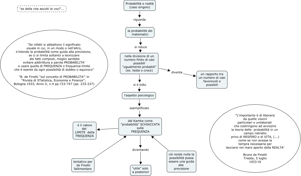 Questa Cmap, creata con IHMC CmapTools, contiene informazioni relative a: de finetti, nella divisione di un numero finito di casi possibili "ugualmente probabili" (es. testa o croce) si è tolto l'aspetto psicologico, dal Kamke come "probabilità" SCHIACCATA sulla FREQUENZA è il valore del LIMITE della FREQUENZA, Probabilità e realtà (caso singolo) riguarda la probabilità dei matematici, la probabilità dei matematici si riduce nella divisione di un numero finito di casi possibili "ugualmente probabili" (es. testa o croce), dal Kamke come "probabilità" SCHIACCATA sulla FREQUENZA diventando "utile" solo a posteriori, ciò rende nulla la possibilità possa essere una guida alla previsione dal Kamke come "probabilità" SCHIACCATA sulla FREQUENZA, l'aspetto psicologico esemplificato dal Kamke come "probabilità" SCHIACCATA sulla FREQUENZA, nella divisione di un numero finito di casi possibili "ugualmente probabili" (es. testa o croce) diventa un rapporto tra un numero di casi favorevoli e possibili, tentativo per de Finetti fallimentare dal Kamke come "probabilità" SCHIACCATA sulla FREQUENZA