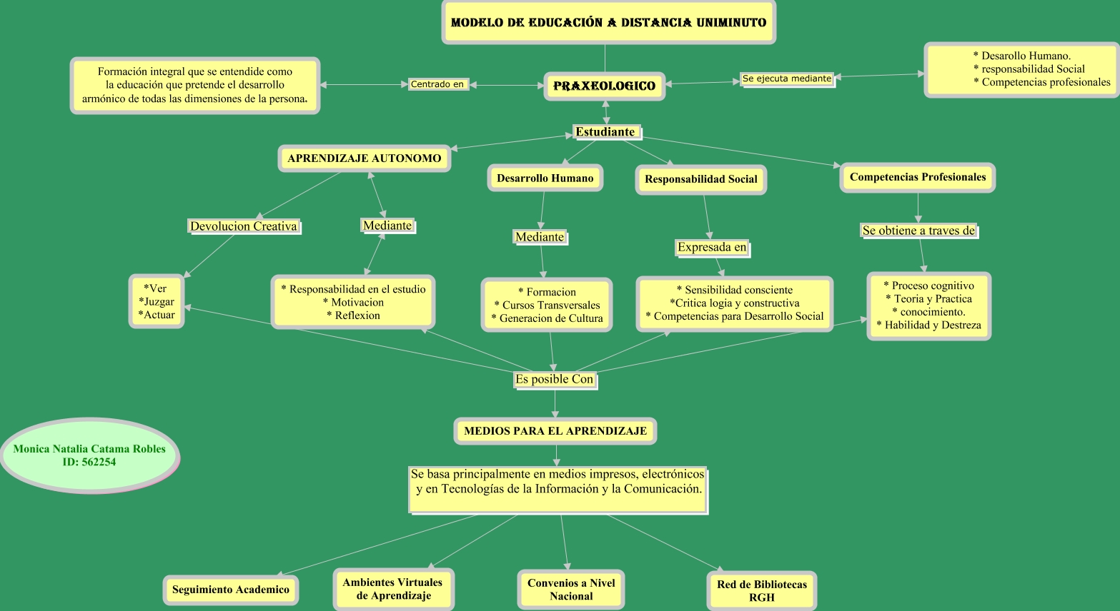 Este Cmap, tiene información relacionada con: Modelo de educacion a distancia, MEDIOS PARA EL APRENDIZAJE Se basa principalmente en medios impresos, electrónicos y en Tecnologías de la Información y la Comunicación. Ambientes Virtuales de Aprendizaje, APRENDIZAJE AUTONOMO Estudiante pRAXEOLOGICO, * Responsabilidad en el estudio * Motivacion * Reflexion Mediante APRENDIZAJE AUTONOMO, * Formacion * Cursos Transversales * Generacion de Cultura Es posible Con MEDIOS PARA EL APRENDIZAJE, * Formacion * Cursos Transversales * Generacion de Cultura Es posible Con * Responsabilidad en el estudio * Motivacion * Reflexion, Desarrollo Humano Mediante * Formacion * Cursos Transversales * Generacion de Cultura, MEDIOS PARA EL APRENDIZAJE Se basa principalmente en medios impresos, electrónicos y en Tecnologías de la Información y la Comunicación. Red de Bibliotecas RGH, APRENDIZAJE AUTONOMO Devolucion Creativa *Ver *Juzgar *Actuar, APRENDIZAJE AUTONOMO Estudiante Competencias Profesionales, MEDIOS PARA EL APRENDIZAJE Se basa principalmente en medios impresos, electrónicos y en Tecnologías de la Información y la Comunicación. Seguimiento Academico, Responsabilidad Social Expresada en * Sensibilidad consciente *Critica logia y constructiva * Competencias para Desarrollo Social, * Desarollo Humano. * responsabilidad Social * Competencias profesionales Se ejecuta mediante pRAXEOLOGICO, APRENDIZAJE AUTONOMO Estudiante Desarrollo Humano, * Formacion * Cursos Transversales * Generacion de Cultura Es posible Con * Sensibilidad consciente *Critica logia y constructiva * Competencias para Desarrollo Social, APRENDIZAJE AUTONOMO Estudiante Responsabilidad Social, * Formacion * Cursos Transversales * Generacion de Cultura Es posible Con *Ver *Juzgar *Actuar, pRAXEOLOGICO ???? Modelo de Educación a Distancia UNIMINUTO, Formación integral que se entendide como la educación que pretende el desarrollo armónico de todas las dimensiones de la persona. Centrado en pRAXEOLOGICO, * Formacion * Cursos Transversales * Generacion de Cultura Es posible Con * Proceso cognitivo * Teoria y Practica * conocimiento. * Habilidad y Destreza, MEDIOS PARA EL APRENDIZAJE Se basa principalmente en medios impresos, electrónicos y en Tecnologías de la Información y la Comunicación. Convenios a Nivel Nacional
