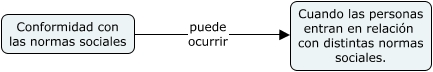 Este Cmap, tiene información relacionada con: Conformidad con las normas sociales (recurso), Conformidad con las normas sociales puede ocurrir Cuando las personas entran en relación con distintas normas sociales.