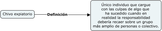Este Cmap, tiene información relacionada con: Agresión desplazada (recurso), Chivo expiatorio Definición Único individuo que cargue con las culpas de algo que ha sucedido cuando en realidad la responsabilidad debería recaer sobre un grupo más amplio de personas o colectivo.