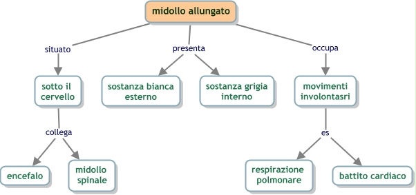 Questa Cmap, creata con IHMC CmapTools, contiene informazioni relative a: 10 midollo allungato, movimenti involontasri es battito cardiaco, midollo allungato presenta sostanza grigia interno, sotto il cervello collega midollo spinale, midollo allungato presenta sostanza bianca esterno, sotto il cervello collega encefalo, midollo allungato situato sotto il cervello, movimenti involontasri es respirazione polmonare, midollo allungato occupa movimenti involontasri