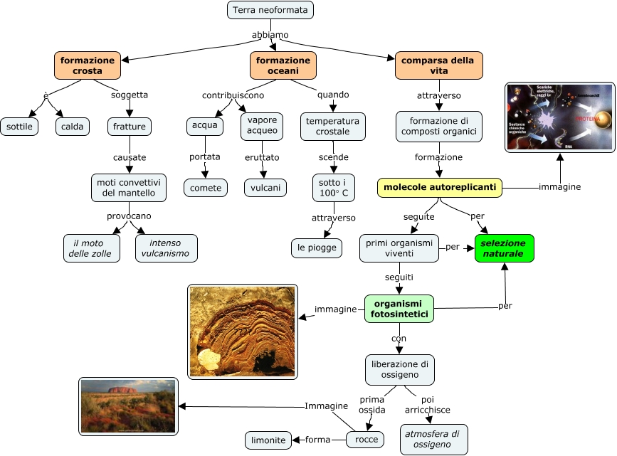 Questa Cmap, creata con IHMC CmapTools, contiene informazioni relative a: 1.5 L'evoluzione della Terra, organismi fotosintetici immagine ????, vapore acqueo eruttato vulcani, moti convettivi del mantello provocano il moto delle zolle, primi organismi viventi per selezione naturale, comparsa della vita attraverso formazione di composti organici, liberazione di ossigeno poi arricchisce atmosfera di ossigeno, Terra neoformata abbiamo formazione crosta, fratture causate moti convettivi del mantello, moti convettivi del mantello provocano intenso vulcanismo, molecole autoreplicanti seguite primi organismi viventi, sotto i 100° C attraverso le piogge, organismi fotosintetici per selezione naturale, Terra neoformata abbiamo formazione oceani, formazione crosta è sottile, liberazione di ossigeno prima ossida rocce, rocce Immagine, molecole autoreplicanti immagine, Terra neoformata abbiamo comparsa della vita, formazione oceani quando temperatura crostale, formazione oceani contribuiscono acqua