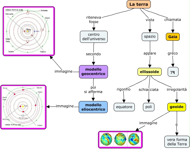 Questa Cmap, creata con IHMC CmapTools, contiene informazioni relative a: 1.2 la terra nello spazio, modello eliocentrico immagine, centro dell'universo secondo modello geocentrico, ellissoide schiacciata poli, La terra riteneva fosse centro dell'universo, La terra chiamata Gaia, La terra vista spazio, spazio appare ellissoide, geoide è vera forma della Terra, Gaia greco γη, modello geocentrico poi si afferma modello eliocentrico, geoide immagine, ellissoide rigonfio equatore, ellissoide irregolarità geoide, modello geocentrico immagine