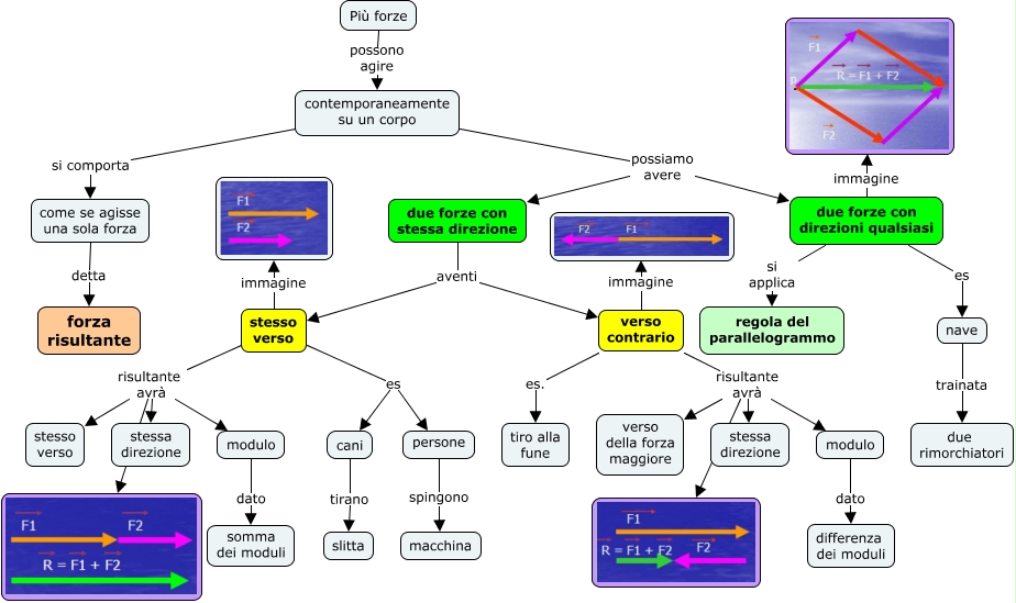 Questa Cmap, creata con IHMC CmapTools, contiene informazioni relative a: composizione delle forze, due forze con stessa direzione aventi stesso verso, stesso verso risultante avrà stessa direzione, verso contrario risultante avrà verso della forza maggiore, verso contrario es. tiro alla fune, verso contrario risultante avrà stessa direzione, contemporaneamente su un corpo si comporta come se agisse una sola forza, nave trainata due rimorchiatori, come se agisse una sola forza detta forza risultante, modulo dato differenza dei moduli, persone spingono macchina, stesso verso risultante avrà stesso verso, stesso verso es cani, stesso verso risultante avrà modulo, due forze con direzioni qualsiasi es nave, stesso verso immagine, due forze con direzioni qualsiasi immagine, verso contrario risultante avrà, due forze con stessa direzione aventi verso contrario, contemporaneamente su un corpo possiamo avere due forze con stessa direzione, verso contrario immagine