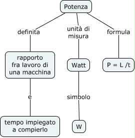 Questa Cmap, creata con IHMC CmapTools, contiene informazioni relative a: Potenza, rapporto fra lavoro di una macchina e tempo impiegato a compierlo, Potenza definita rapporto fra lavoro di una macchina, Potenza unità di misura Watt, Potenza formula P = L /t, Watt simbolo W