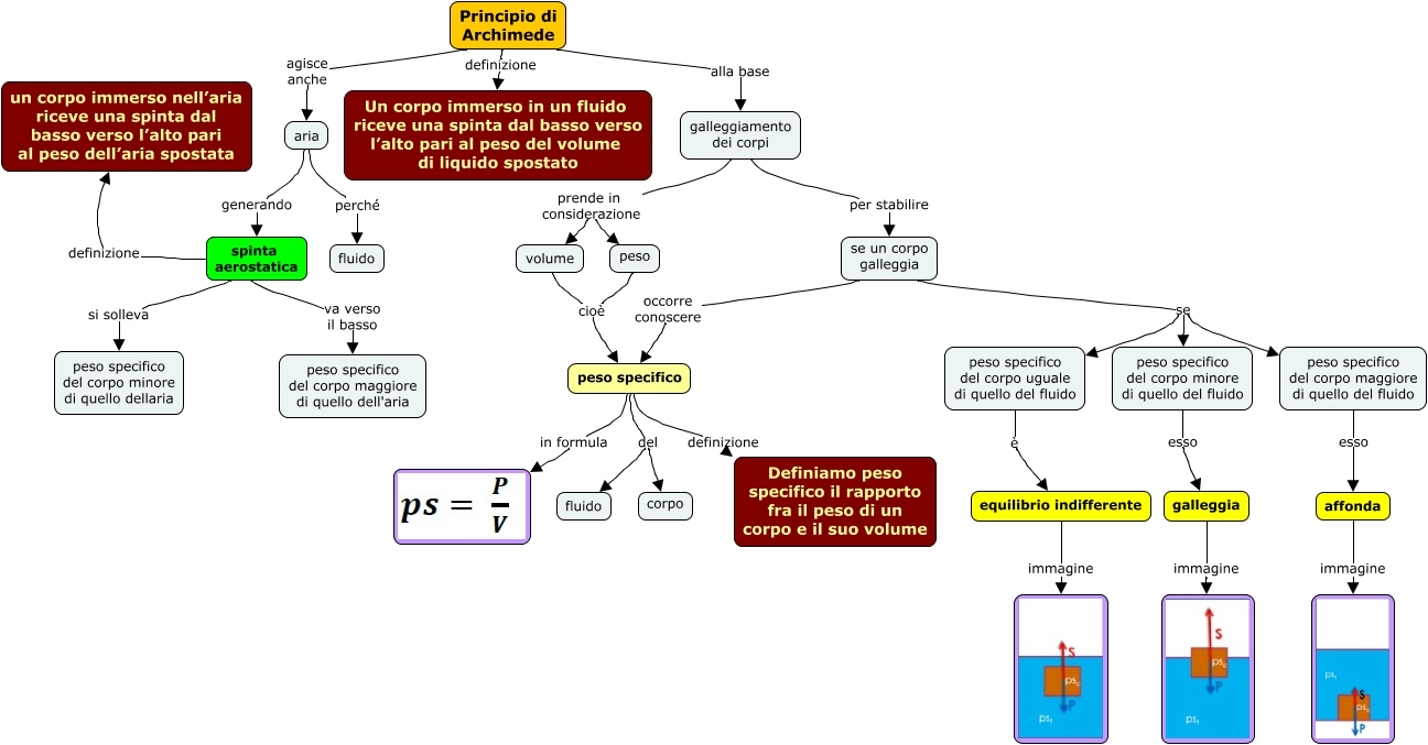 Questa Cmap, creata con IHMC CmapTools, contiene informazioni relative a: 3.6 Principio di archimede, se un corpo galleggia se peso specifico del corpo uguale di quello del fluido, se un corpo galleggia occorre conoscere peso specifico, aria generando spinta aerostatica, peso specifico in formula, Principio di Archimede alla base galleggiamento dei corpi, se un corpo galleggia se peso specifico del corpo minore di quello del fluido, peso specifico definizione Definiamo peso specifico il rapporto fra il peso di un corpo e il suo volume, peso specifico del corpo maggiore di quello del fluido esso affonda, Principio di Archimede agisce anche aria, peso cioè peso specifico, spinta aerostatica definizione un corpo immerso nell’aria riceve una spinta dal basso verso l’alto pari al peso dell’aria spostata, spinta aerostatica si solleva peso specifico del corpo minore di quello dellaria, galleggia immagine, peso specifico del corpo, galleggiamento dei corpi prende in considerazione volume, peso specifico del fluido, affonda immagine, peso specifico del corpo minore di quello del fluido esso galleggia, galleggiamento dei corpi prende in considerazione peso, aria perché fluido