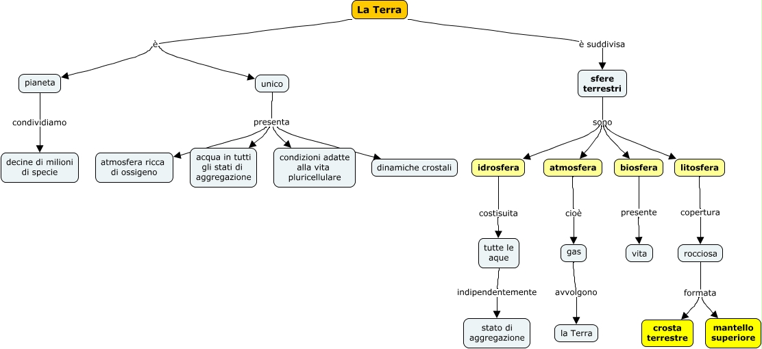 Questa Cmap, creata con IHMC CmapTools, contiene informazioni relative a: 1.1 La terra, La Terra è pianeta, gas avvolgono la Terra, pianeta condividiamo decine di milioni di specie, unico presenta acqua in tutti gli stati di aggregazione, litosfera copertura rocciosa, unico presenta condizioni adatte alla vita pluricellulare, sfere terrestri sono litosfera, atmosfera cioè gas, sfere terrestri sono idrosfera, La Terra è unico, unico presenta atmosfera ricca di ossigeno, sfere terrestri sono atmosfera, rocciosa formata crosta terrestre, sfere terrestri sono biosfera, La Terra è suddivisa sfere terrestri, biosfera presente vita, rocciosa formata mantello superiore, idrosfera costisuita tutte le aque, unico presenta dinamiche crostali, tutte le aque indipendentemente stato di aggregazione