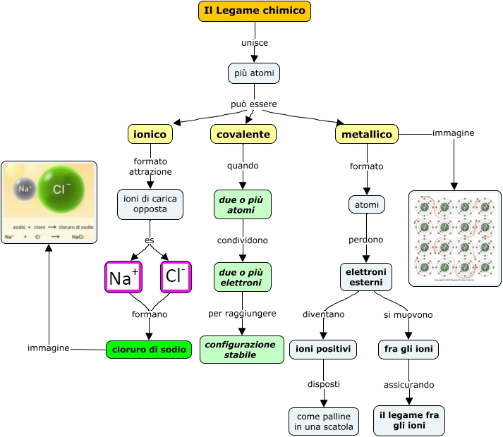 Questa Cmap, creata con IHMC CmapTools, contiene informazioni relative a: 6.8 Il legame chimico, covalente quando due o più atomi, fra gli ioni assicurando il legame fra gli ioni, metallico formato atomi, Il Legame chimico unisce più atomi, ioni di carica opposta es, ionico formato attrazione ioni di carica opposta, cloruro di sodio immagine, elettroni esterni si muovono fra gli ioni, ioni positivi disposti come palline in una scatola, più atomi può essere ionico, più atomi può essere covalente, più atomi può essere metallico, formano cloruro di sodio, atomi perdono elettroni esterni, ioni di carica opposta es, due o più atomi condividono due o più elettroni, due o più elettroni per raggiungere configurazione stabile, elettroni esterni diventano ioni positivi, formano cloruro di sodio, metallico immagine