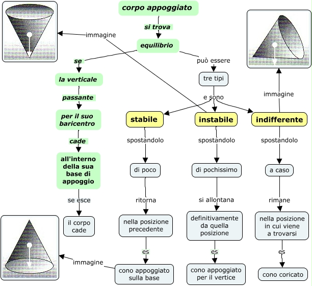 Questa Cmap, creata con IHMC CmapTools, contiene informazioni relative a: 3.4 Equilibrio dei corpi appoggiati, di pochissimo si allontana definitivamente da quella posizione, stabile spostandolo di poco, all'interno della sua base di appoggio se esce il corpo cade, corpo appoggiato si trova equilibrio, tre tipi e sono instabile, a caso rimane nella posizione in cui viene a trovarsi, instabile immagine, indifferente immagine, nella posizione precedente es cono appoggiato sulla base, nella posizione in cui viene a trovarsi es cono coricato, indifferente spostandolo a caso, tre tipi e sono stabile, instabile spostandolo di pochissimo, equilibrio può essere tre tipi, definitivamente da quella posizione es cono appoggiato per il vertice, cono appoggiato sulla base immagine, per il suo baricentro cade all'interno della sua base di appoggio, tre tipi e sono indifferente, equilibrio se la verticale, la verticale passante per il suo baricentro