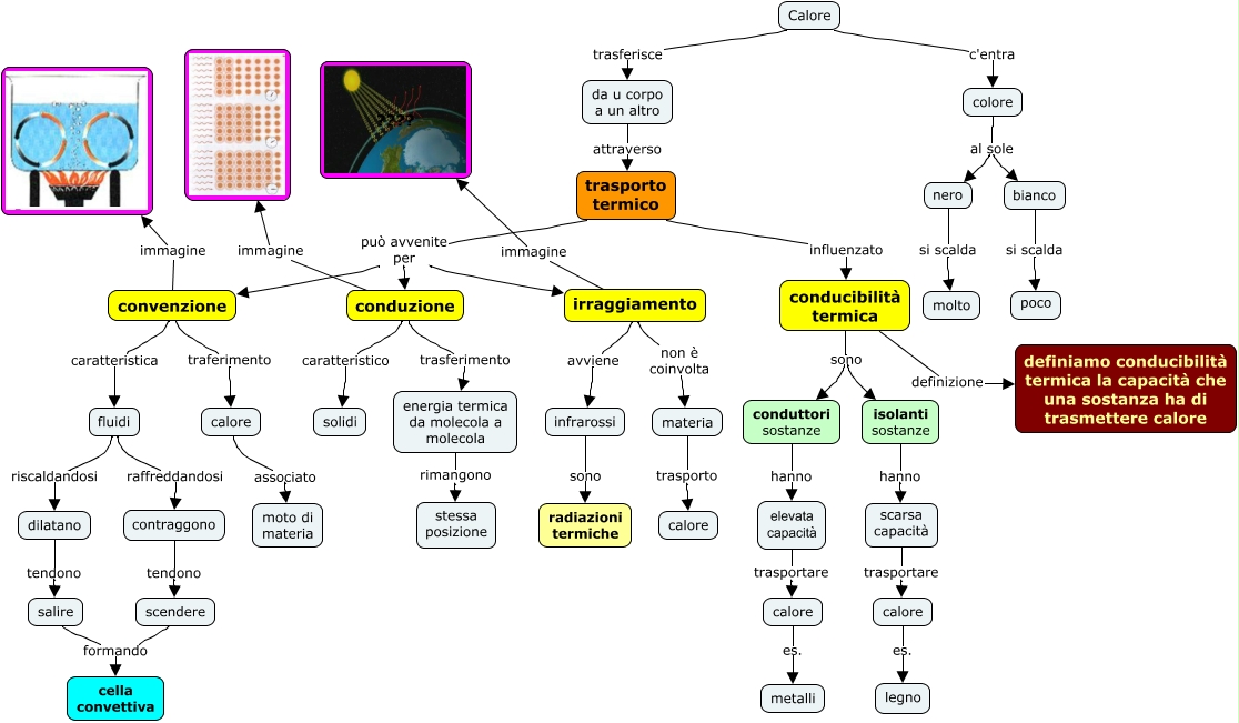 Questa Cmap, creata con IHMC CmapTools, contiene informazioni relative a: 4.2 traporto termico, trasporto termico può avvenite per convenzione, convenzione immagine, trasporto termico può avvenite per conduzione, conduzione trasferimento energia termica da molecola a molecola, irraggiamento avviene infrarossi, fluidi raffreddandosi contraggono, conducibilità termica definizione definiamo conducibilità termica la capacità che una sostanza ha di trasmettere calore, conduzione immagine, conducibilità termica sono conduttori sostanze, salire formando cella convettiva, da u corpo a un altro attraverso trasporto termico, convenzione traferimento calore, colore al sole bianco, scarsa capacità trasportare calore, materia trasporto calore, irraggiamento non è coinvolta materia, conducibilità termica sono isolanti sostanze, contraggono tendono scendere, dilatano tendono salire, scendere formando cella convettiva