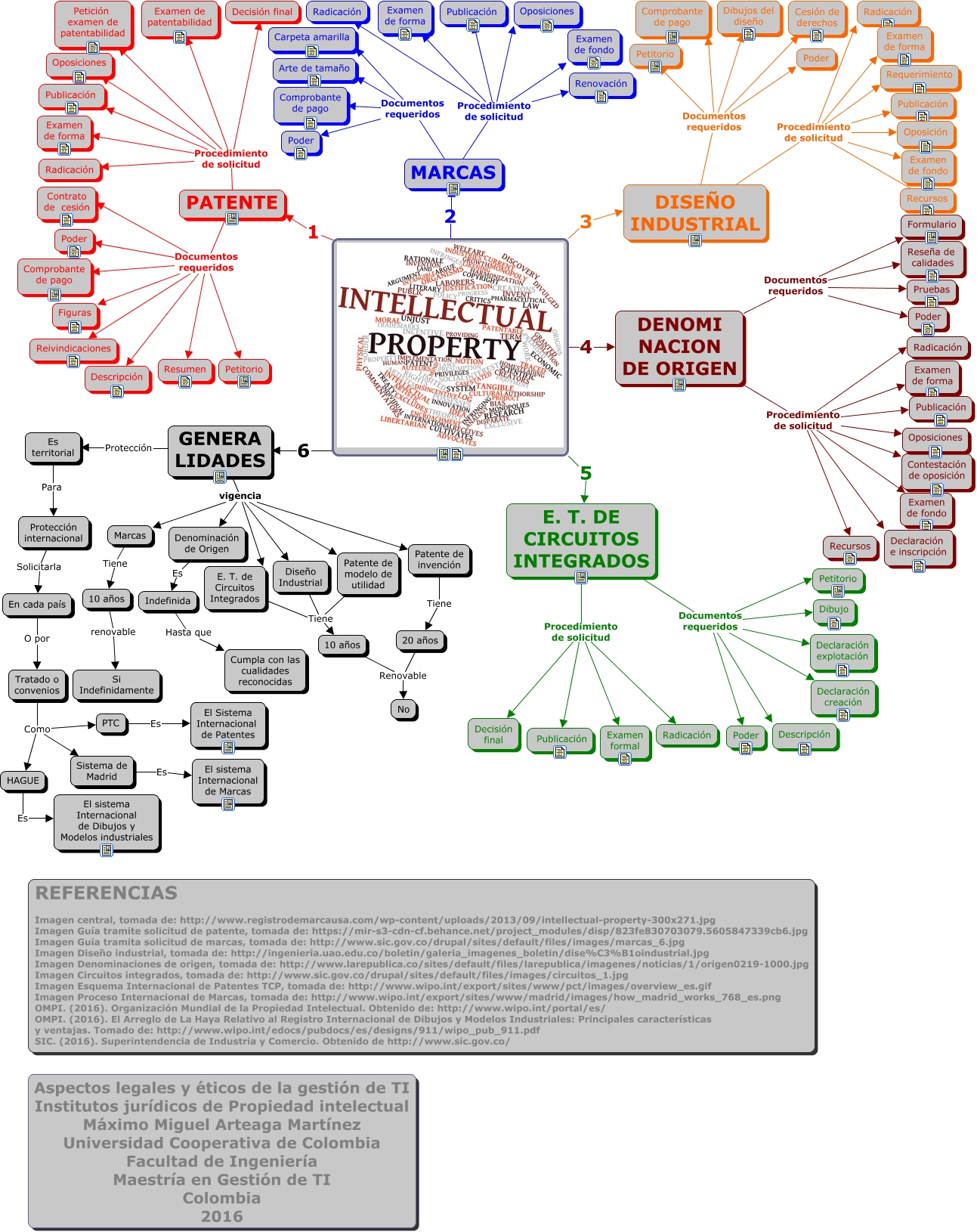 Este Cmap, tiene información relacionada con: Institutos Juridicos PI, DISEÑO INDUSTRIAL Procedimiento de solicitud Radicación, E. T. DE CIRCUITOS INTEGRADOS Procedimiento de solicitud Examen formal, GENERA LIDADES vigencia Marcas, E. T. de Circuitos Integrados Tiene 10 años, E. T. DE CIRCUITOS INTEGRADOS Documentos requeridos Declaración explotación, PATENTE Procedimiento de solicitud Radicación, Tratado o convenios Como PTC, En cada país O por Tratado o convenios, DENOMI NACION DE ORIGEN Documentos requeridos Formulario, Tratado o convenios Como Sistema de Madrid, HAGUE Es El sistema Internacional de Dibujos y Modelos industriales, DENOMI NACION DE ORIGEN Procedimiento de solicitud Radicación, Tratado o convenios Como HAGUE, DISEÑO INDUSTRIAL Documentos requeridos Petitorio, 20 años Renovable No, E. T. DE CIRCUITOS INTEGRADOS Procedimiento de solicitud Decisión final, PATENTE Procedimiento de solicitud Examen de patentabilidad, MARCAS Documentos requeridos Comprobante de pago, GENERA LIDADES vigencia Patente de invención, E. T. DE CIRCUITOS INTEGRADOS Documentos requeridos Dibujo