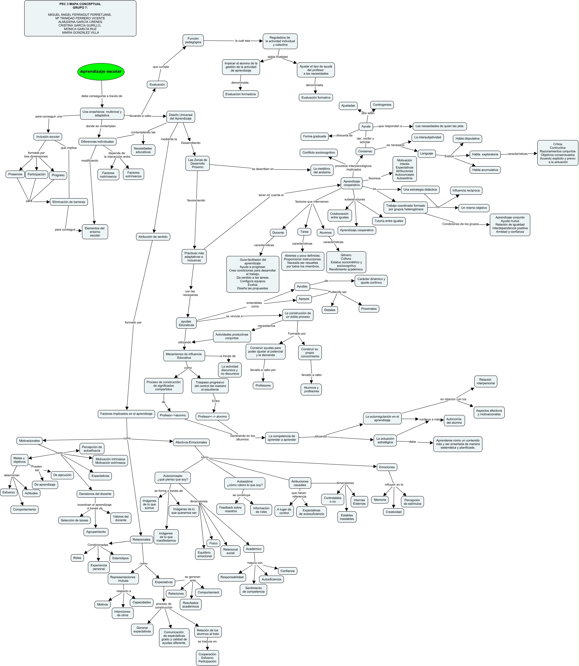 Este Cmap, tiene información relacionada con: Mapa conceptual procesos, Expectativas se generan ante Resultados académicos, Motivacionales como Expectativas, Inclusión escolar formada por tres dimensiones Presencia, Mecanismos de influencia Educativa como Traspaso progresivo del control del maestro al estudiante, Prácticas más adaptativas e inclusivas con las necesarias ayudas Educativas, Atribución de sentido formado por Factores implicados en el aprendizaje, Decisiones del docente incentivan el aprendizaje a través de Valores del docente, Lenguaje Estilos Habla exploratoria, Autoconcepto ¿qué pienso que soy? se forma a través de Imágenes de lo que manifestamos, Proceso de construcción de significados compartidos de Profesor-->alumno, Autoconcepto ¿qué pienso que soy? se forma a través de Imágenes de lo que somos, Afectivos-Emocionales como Autoestima ¿cómo valoro lo que soy?, La autorregulación en el aprendizaje conlleva a más Autonomía del alumno, Aprendizaje cooperativo subestructuras Tutoría entre iguales, Autoestima ¿cómo valoro lo que soy? se construye Información de roles, Inclusión escolar formada por tres dimensiones Progreso, Ajustar el tipo de ayuda del profesor a las necesidades denominada Evaluación formativa, Atribuciones causales que hacen referencia A lugar de control, Construir su propio conocimiento llevado a cabo Alumnos y profesores, Aprendizaje cooperativo subestructuras Colaboración entre iguales