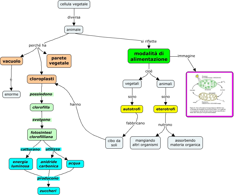 Questa Cmap, creata con IHMC CmapTools, contiene informazioni relative a: 12.6 Cellula vegetale e animale, vegetali sono autotrofi, animale perché ha parete vegetale, acqua producono zuccheri, anidride carbonica producono zuccheri, clorofilla svolgono fotosintesi clorofilliana, modalità di alimentazione cioè vegetali, modalità di alimentazione immagine, fotosintesi clorofilliana utilizza anidride carbonica, animale perché ha vacuolo, animali sono eterotrofi, animale si riflette modalità di alimentazione, vacuolo è enorme, eterotrofi nutrono mangiando altri organismi, modalità di alimentazione cioè animali, energia luminosa producono zuccheri, cibo da soli hanno cloroplasti, cellula vegetale diversa animale, eterotrofi nutrono assorbendo materia organica, autotrofi fabbricano cibo da soli, cloroplasti possiedono clorofilla