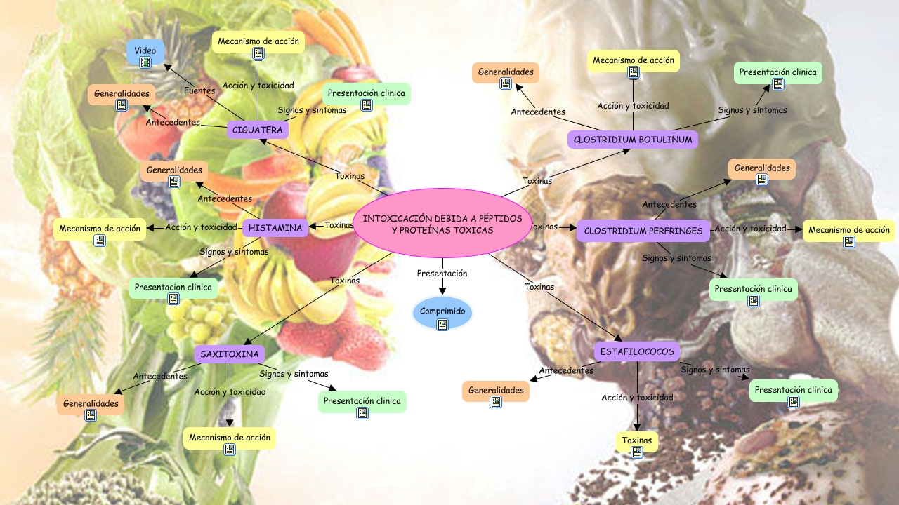 Este Cmap, tiene información relacionada con: Intoxicación por Péptidos, INTOXICACIÓN DEBIDA A PÉPTIDOS Y PROTEÍNAS TOXICAS Toxinas ESTAFILOCOCOS, INTOXICACIÓN DEBIDA A PÉPTIDOS Y PROTEÍNAS TOXICAS Toxinas HISTAMINA, CIGUATERA Signos y sintomas Presentación clinica, SAXITOXINA Acción y toxicidad Mecanismo de acción, CLOSTRIDIUM BOTULINUM Antecedentes Generalidades, ESTAFILOCOCOS Acción y toxicidad Toxinas, CLOSTRIDIUM BOTULINUM Signos y síntomas Presentación clinica, INTOXICACIÓN DEBIDA A PÉPTIDOS Y PROTEÍNAS TOXICAS Presentación Comprimido, CLOSTRIDIUM PERFRINGES Antecedentes Generalidades, INTOXICACIÓN DEBIDA A PÉPTIDOS Y PROTEÍNAS TOXICAS Toxinas CLOSTRIDIUM PERFRINGES, ESTAFILOCOCOS Antecedentes Generalidades, HISTAMINA Antecedentes Generalidades, INTOXICACIÓN DEBIDA A PÉPTIDOS Y PROTEÍNAS TOXICAS Toxinas CIGUATERA, CIGUATERA Fuentes Video, INTOXICACIÓN DEBIDA A PÉPTIDOS Y PROTEÍNAS TOXICAS Toxinas SAXITOXINA, HISTAMINA Signos y sintomas Presentacion clinica, SAXITOXINA Signos y sintomas Presentación clinica, SAXITOXINA Antecedentes Generalidades, INTOXICACIÓN DEBIDA A PÉPTIDOS Y PROTEÍNAS TOXICAS Toxinas CLOSTRIDIUM BOTULINUM, CLOSTRIDIUM PERFRINGES Acción y toxicidad Mecanismo de acción