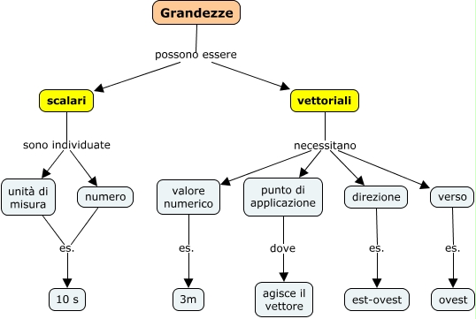 Questa Cmap, creata con IHMC CmapTools, contiene informazioni relative a: 1.4 grandezze scalari e vettoriali DSA, Grandezze possono essere scalari, Grandezze possono essere vettoriali, direzione es. est-ovest, valore numerico es. 3m, scalari sono individuate numero, numero es. 10 s, vettoriali necessitano verso, unità di misura es. 10 s, verso es. ovest, vettoriali necessitano valore numerico, scalari sono individuate unità di misura, punto di applicazione dove agisce il vettore, vettoriali necessitano punto di applicazione, vettoriali necessitano direzione