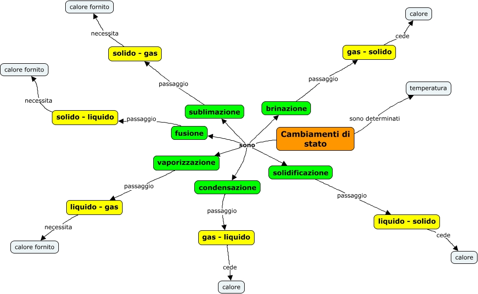 Questa Cmap, creata con IHMC CmapTools, contiene informazioni relative a: 3.4 Passaggi di stato, solido - gas necessita calore fornito, Cambiamenti di stato sono fusione, liquido - solido cede calore, Cambiamenti di stato sono determinati temperatura, Cambiamenti di stato sono solidificazione, vaporizzazione passaggio liquido - gas, sublimazione passaggio solido - gas, gas - solido cede calore, solidificazione passaggio liquido - solido, condensazione passaggio gas - liquido, gas - liquido cede calore, Cambiamenti di stato sono vaporizzazione, Cambiamenti di stato sono sublimazione, brinazione passaggio gas - solido, liquido - gas necessita calore fornito, Cambiamenti di stato sono brinazione, Cambiamenti di stato sono condensazione, fusione passaggio solido - liquido, solido - liquido necessita calore fornito