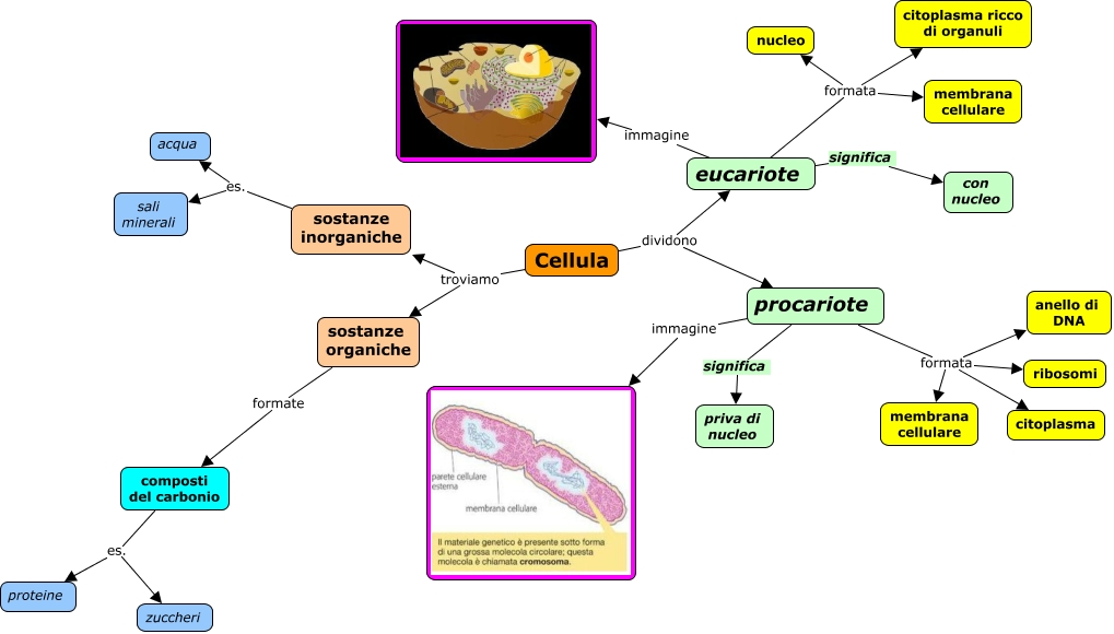 Questa Cmap, creata con IHMC CmapTools, contiene informazioni relative a: 12.2 cellule eucariote e procariote, procariote formata anello di DNA, procariote immagine, procariote formata membrana cellulare, eucariote immagine, Cellula dividono eucariote, procariote significa priva di nucleo, composti del carbonio es. zuccheri, procariote formata citoplasma, procariote formata ribosomi, Cellula dividono procariote, sostanze organiche formate composti del carbonio, eucariote significa con nucleo, eucariote formata citoplasma ricco di organuli, eucariote formata membrana cellulare, Cellula troviamo sostanze inorganiche, sostanze inorganiche es. acqua, eucariote formata nucleo, sostanze inorganiche es. sali minerali, composti del carbonio es. proteine, Cellula troviamo sostanze organiche