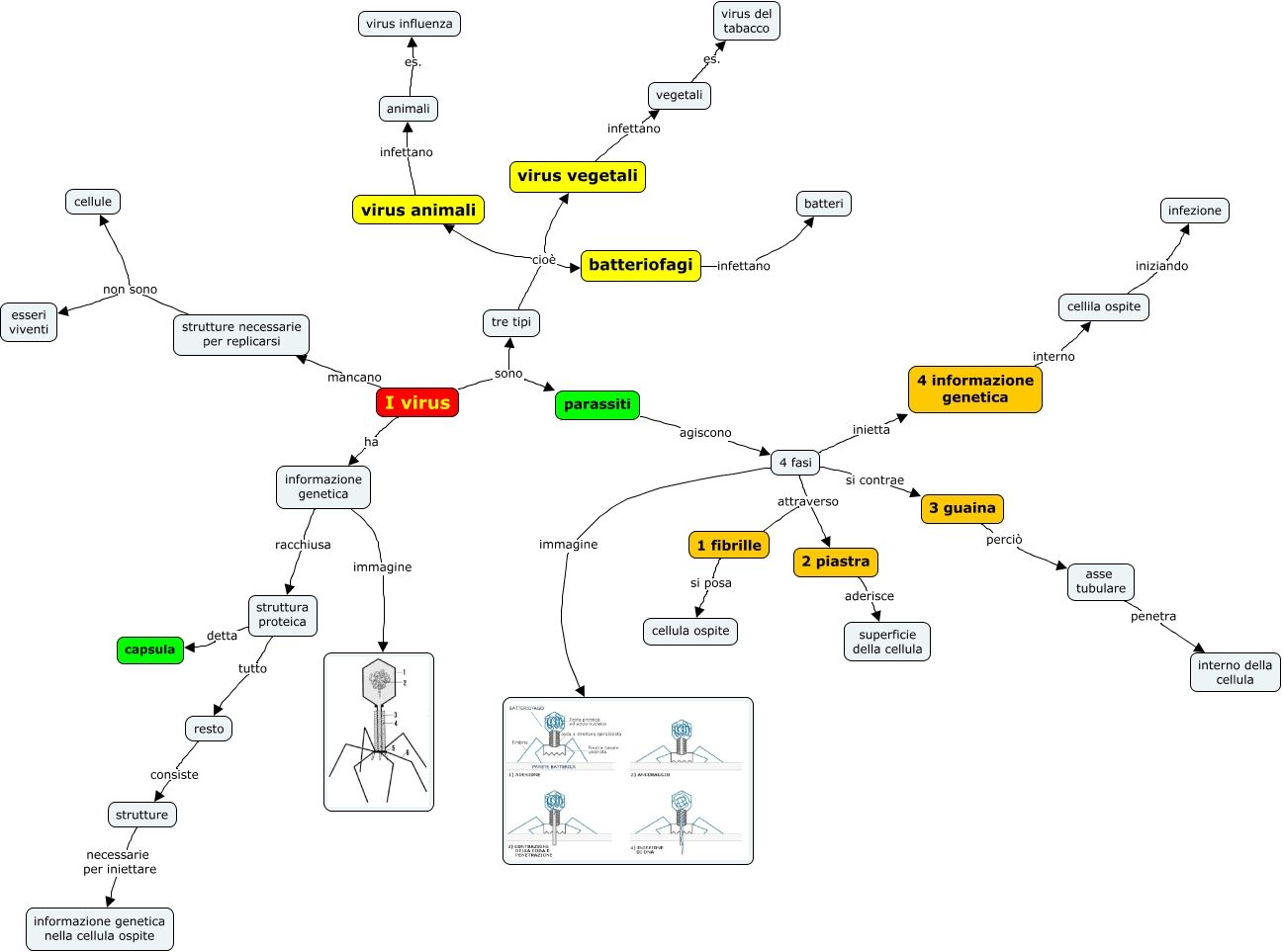 Questa Cmap, creata con IHMC CmapTools, contiene informazioni relative a: 14.4 Virus, 4 fasi attraverso 1 fibrille, vegetali es. virus del tabacco, 4 fasi immagine, 1 fibrille si posa cellula ospite, I virus sono parassiti, strutture necessarie per replicarsi non sono cellule, struttura proteica detta capsula, 4 fasi si contrae 3 guaina, 4 informazione genetica interno cellila ospite, parassiti agiscono 4 fasi, I virus ha informazione genetica, I virus sono tre tipi, cellila ospite iniziando infezione, 3 guaina perciò asse tubulare, animali es. virus influenza, I virus mancano strutture necessarie per replicarsi, batteriofagi infettano batteri, asse tubulare penetra interno della cellula, tre tipi cioè virus vegetali, strutture necessarie per replicarsi non sono esseri viventi