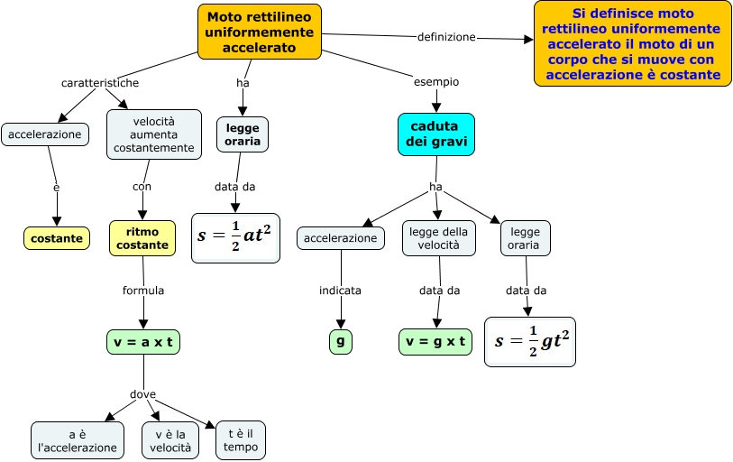 Questa Cmap, creata con IHMC CmapTools, contiene informazioni relative a: 1.7 moto rettilineo uniformemente accelerato DSA, Moto rettilineo uniformemente accelerato esempio caduta dei gravi, caduta dei gravi ha accelerazione, Moto rettilineo uniformemente accelerato ha legge oraria, Moto rettilineo uniformemente accelerato caratteristiche velocità aumenta costantemente, accelerazione è costante, v = a x t dove a è l'accelerazione, accelerazione indicata g, v = a x t dove t è il tempo, velocità aumenta costantemente con ritmo costante, legge oraria data da, ritmo costante formula v = a x t, legge oraria data da, Moto rettilineo uniformemente accelerato caratteristiche accelerazione, v = a x t dove v è la velocità, caduta dei gravi ha legge della velocità, legge della velocità data da v = g x t, Moto rettilineo uniformemente accelerato definizione Si definisce moto rettilineo uniformemente accelerato il moto di un corpo che si muove con accelerazione è costante, caduta dei gravi ha legge oraria