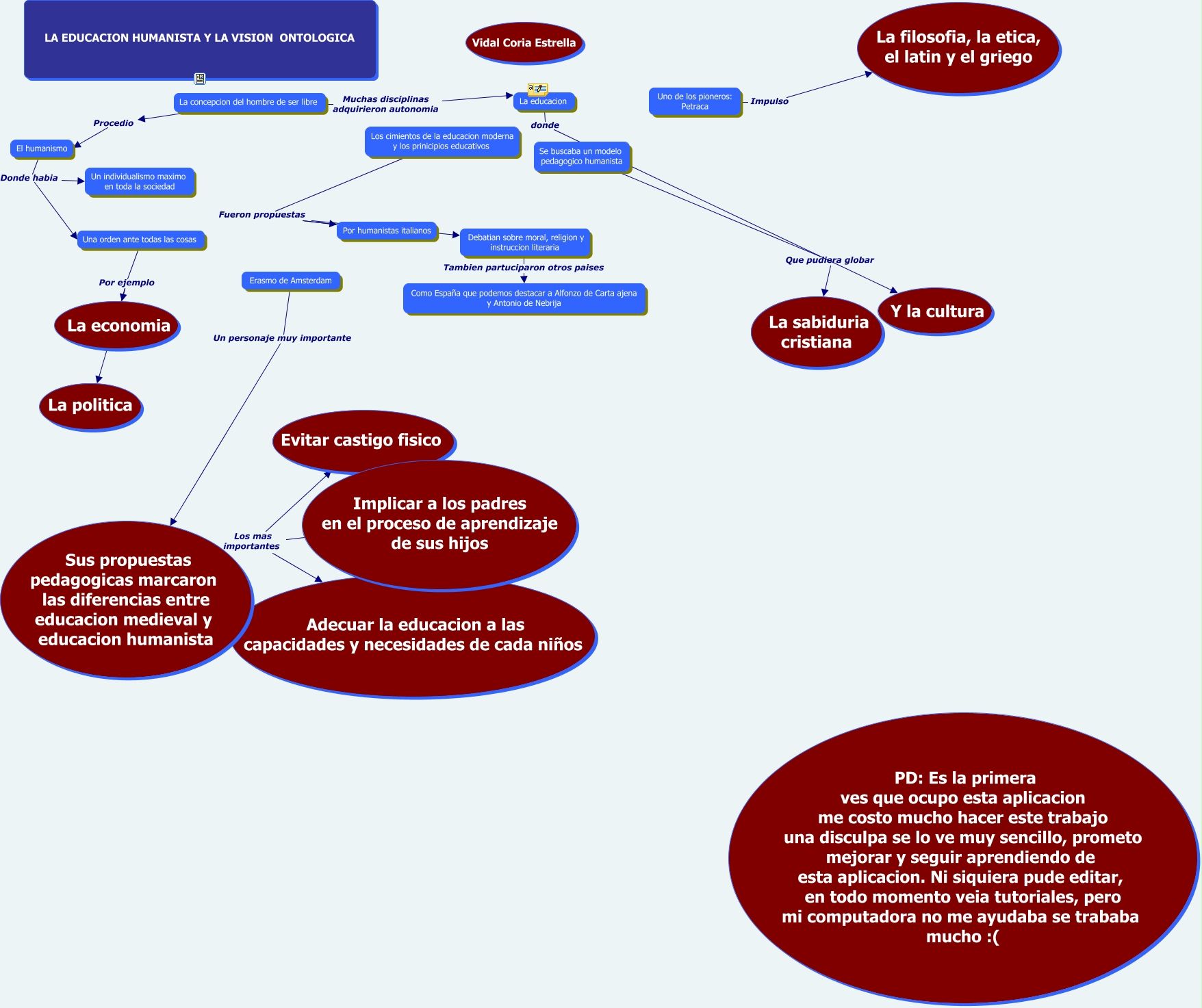 Este Cmap, tiene información relacionada con: ActividadNo2MapasConceptuales, Por humanistas italianos Fueron propuestas Debatian sobre moral, religion y instruccion literaria, Implicar a los padres en el proceso de aprendizaje de sus hijos Los mas importantes Evitar castigo fisico, Implicar a los padres en el proceso de aprendizaje de sus hijos Los mas importantes Adecuar la educacion a las capacidades y necesidades de cada niños, El humanismo Donde habia Una orden ante todas las cosas, Erasmo de Amsterdam Un personaje muy importante Sus propuestas pedagogicas marcaron las diferencias entre educacion medieval y educacion humanista, Los cimientos de la educacion moderna y los prinicipios educativos Fueron propuestas Debatian sobre moral, religion y instruccion literaria, Debatian sobre moral, religion y instruccion literaria Tambien partuciparon otros paises Como España que podemos destacar a Alfonzo de Carta ajena y Antonio de Nebrija, Los cimientos de la educacion moderna y los prinicipios educativos Fueron propuestas Por humanistas italianos, Una orden ante todas las cosas Por ejemplo La economia, La concepcion del hombre de ser libre Muchas disciplinas adquirieron autonomia La educacion, La educacion donde Y la cultura, La concepcion del hombre de ser libre Procedio El humanismo, Se buscaba un modelo pedagogico humanista Que pudiera globar La sabiduria cristiana, El humanismo Donde habia Un individualismo maximo en toda la sociedad, Una orden ante todas las cosas Por ejemplo La politica, Uno de los pioneros: Petraca Impulso La filosofia, la etica, el latin y el griego