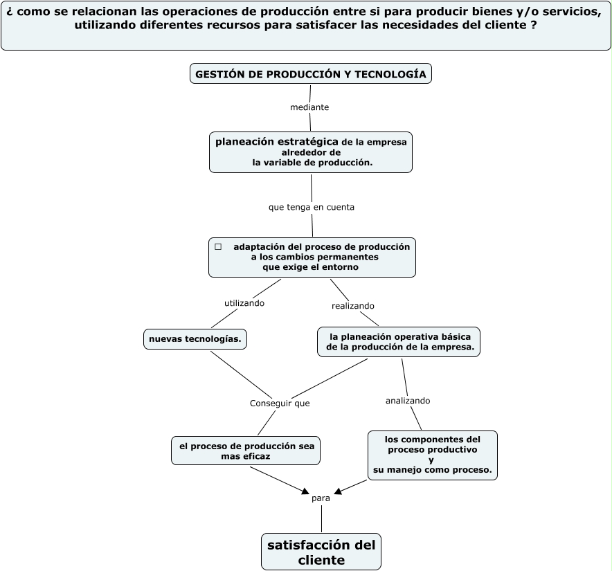 Este Cmap, tiene información relacionada con: GESTION DE PRODUCCION Y TECNOLOGIA- cmap de la materia, nuevas tecnologías. Conseguir que el proceso de producción sea mas eficaz, la planeación operativa básica de la producción de la empresa. Conseguir que el proceso de producción sea mas eficaz, planeación estratégica de la empresa alrededor de la variable de producción. que tenga en cuenta �?� adaptación del proceso de producción a los cambios permanentes que exige el entorno, GESTIÓN DE PRODUCCIÓN Y TECNOLOG�?A mediante planeación estratégica de la empresa alrededor de la variable de producción., la planeación operativa básica de la producción de la empresa. analizando los componentes del proceso productivo y su manejo como proceso., �?� adaptación del proceso de producción a los cambios permanentes que exige el entorno utilizando nuevas tecnologías., �?� adaptación del proceso de producción a los cambios permanentes que exige el entorno realizando la planeación operativa básica de la producción de la empresa.