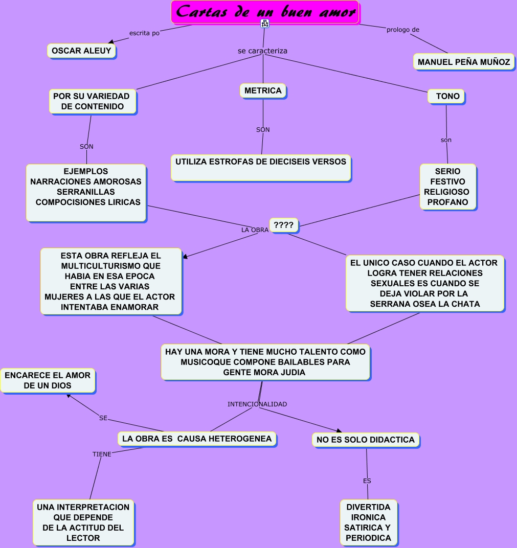 Este Cmap, tiene información relacionada con: F4, Cartas de un buen amor escrita po OSCAR ALEUY, LA OBRA ES CAUSA HETEROGENEA TIENE UNA INTERPRETACION QUE DEPENDE DE LA ACTITUD DEL LECTOR, EJEMPLOS NARRACIONES AMOROSAS SERRANILLAS COMPOCISIONES LIRICAS LA OBRA TRATA ESTA OBRA REFLEJA EL MULTICULTURISMO QUE HABIA EN ESA EPOCA ENTRE LAS VARIAS MUJERES A LAS QUE EL ACTOR INTENTABA ENAMORAR, LA OBRA ES CAUSA HETEROGENEA SE ENCARECE EL AMOR DE UN DIOS, NO ES SOLO DIDACTICA ES DIVERTIDA IRONICA SATIRICA Y PERIODICA, POR SU VARIEDAD DE CONTENIDO se caracteriza METRICA, POR SU VARIEDAD DE CONTENIDO SON EJEMPLOS NARRACIONES AMOROSAS SERRANILLAS COMPOCISIONES LIRICAS, HAY UNA MORA Y TIENE MUCHO TALENTO COMO MUSICOQUE COMPONE BAILABLES PARA GENTE MORA JUDIA NO ES SOLO DIDACTICA, METRICA SON UTILIZA ESTROFAS DE DIECISEIS VERSOS, EL UNICO CASO CUANDO EL ACTOR LOGRA TENER RELACIONES SEXUALES ES CUANDO SE DEJA VIOLAR POR LA SERRANA OSEA LA CHATA ???? HAY UNA MORA Y TIENE MUCHO TALENTO COMO MUSICOQUE COMPONE BAILABLES PARA GENTE MORA JUDIA, Cartas de un buen amor prologo de MANUEL PEÑA MUÑOZ, HAY UNA MORA Y TIENE MUCHO TALENTO COMO MUSICOQUE COMPONE BAILABLES PARA GENTE MORA JUDIA INTENCIONALIDAD LA OBRA ES CAUSA HETEROGENEA, ESTA OBRA REFLEJA EL MULTICULTURISMO QUE HABIA EN ESA EPOCA ENTRE LAS VARIAS MUJERES A LAS QUE EL ACTOR INTENTABA ENAMORAR ???? HAY UNA MORA Y TIENE MUCHO TALENTO COMO MUSICOQUE COMPONE BAILABLES PARA GENTE MORA JUDIA, Cartas de un buen amor se caracteriza METRICA, TONO son SERIO FESTIVO RELIGIOSO PROFANO, TONO se caracteriza METRICA, SERIO FESTIVO RELIGIOSO PROFANO EL UNICO CASO CUANDO EL ACTOR LOGRA TENER RELACIONES SEXUALES ES CUANDO SE DEJA VIOLAR POR LA SERRANA OSEA LA CHATA
