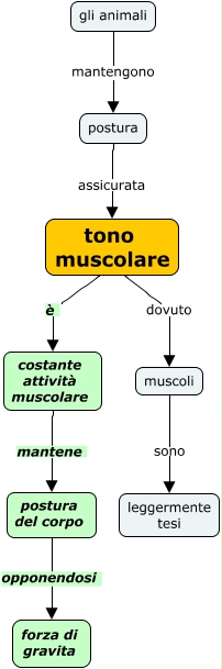Questa Cmap, creata con IHMC CmapTools, contiene informazioni relative a: 13.09 Tono muscolare, postura assicurata tono muscolare, tono muscolare dovuto muscoli, postura del corpo opponendosi forza di gravita, gli animali mantengono postura, tono muscolare è costante attività muscolare, costante attività muscolare mantene postura del corpo, muscoli sono leggermente tesi