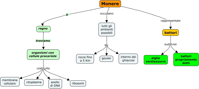 Questa Cmap, creata con IHMC CmapTools, contiene informazioni relative a: 14.1 Monere, Monere occupano tutti gli ambienti possibili, organismi con cellule procariote costituita ribosomi, batteri suddivisi alghe verdiazzurre, organismi con cellule procariote costituita membrana cellulare, tutti gli ambienti possibili es. geyser, Monere rappresentate batteri, tutti gli ambienti possibili es. interno dei ghiacciai, batteri suddivisi batteri propriamente detti, regno troviamo organismi con cellule procariote, organismi con cellule procariote costituita anello di DNA, Monere è regno, tutti gli ambienti possibili es. rocce fino a 5 Km, organismi con cellule procariote costituita citoplasma