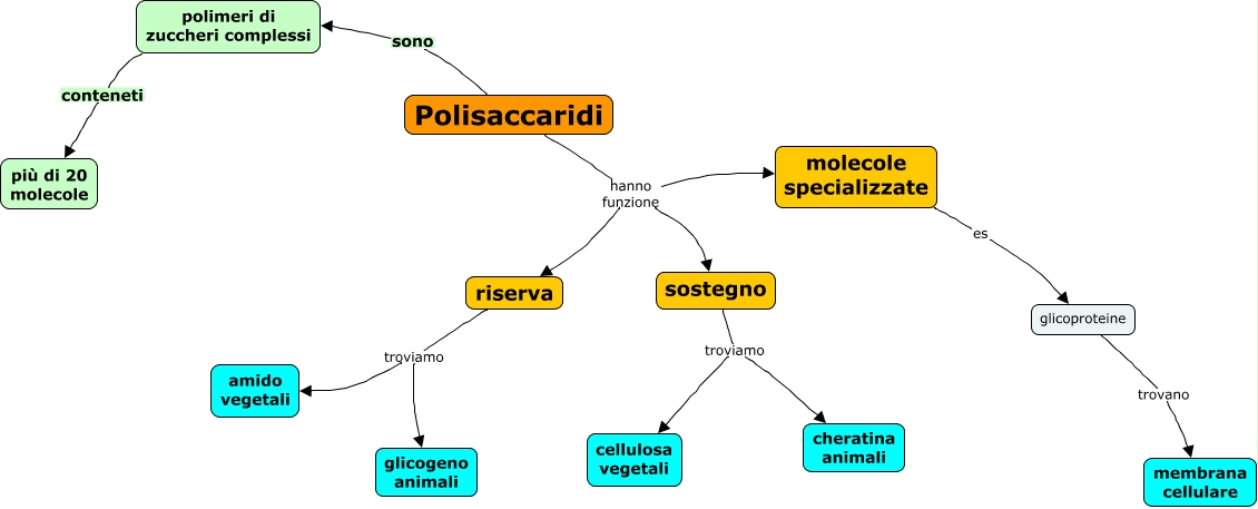 Questa Cmap, creata con IHMC CmapTools, contiene informazioni relative a: 14.06 Polisaccaridi, Polisaccaridi hanno funzione sostegno, polimeri di zuccheri complessi conteneti più di 20 molecole, Polisaccaridi hanno funzione riserva, Polisaccaridi sono polimeri di zuccheri complessi, sostegno troviamo cheratina animali, Polisaccaridi hanno funzione molecole specializzate, molecole specializzate es glicoproteine, riserva troviamo amido vegetali, riserva troviamo glicogeno animali, glicoproteine trovano membrana cellulare, sostegno troviamo cellulosa vegetali