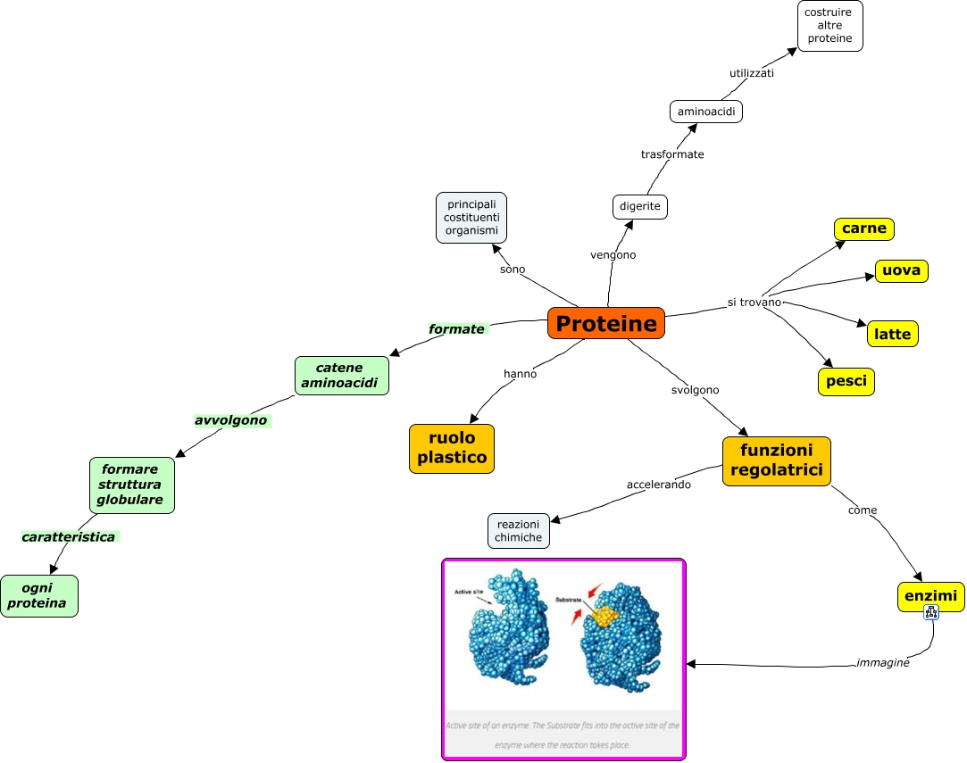 Questa Cmap, creata con IHMC CmapTools, contiene informazioni relative a: 14.08 Proteine, aminoacidi utilizzati costruire altre proteine, Proteine formate catene aminoacidi, Proteine si trovano uova, funzioni regolatrici come enzimi, formare struttura globulare caratteristica ogni proteina, Proteine vengono digerite, Proteine svolgono funzioni regolatrici, Proteine si trovano latte, digerite trasformate aminoacidi, enzimi immagine, Proteine si trovano pesci, catene aminoacidi avvolgono formare struttura globulare, Proteine hanno ruolo plastico, funzioni regolatrici accelerando reazioni chimiche, Proteine sono principali costituenti organismi, Proteine si trovano carne