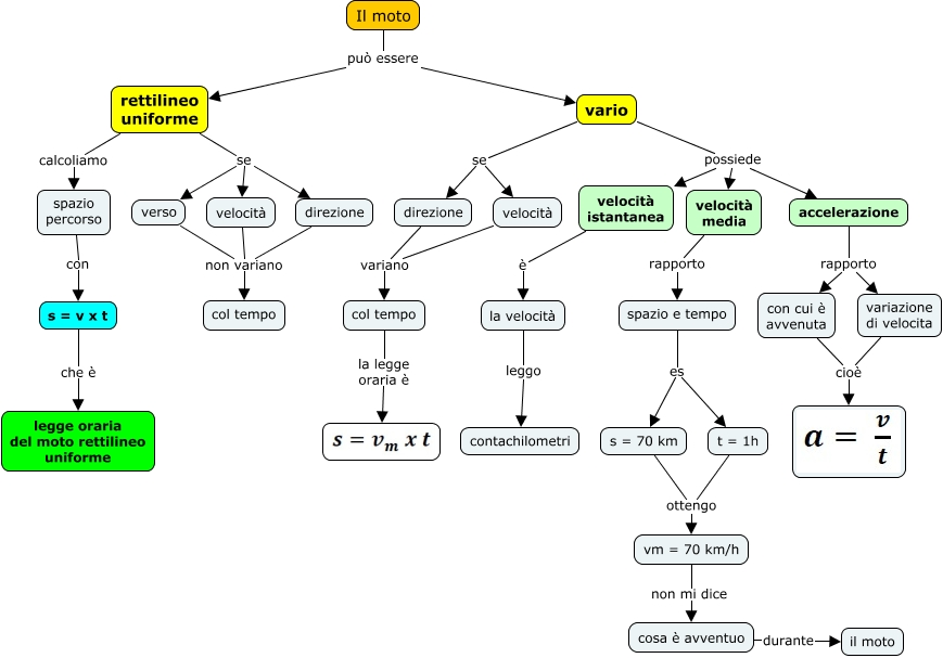 Questa Cmap, creata con IHMC CmapTools, contiene informazioni relative a: 1.6 moto rettilineo uniforme e vario, vario se direzione, vm = 70 km/h non mi dice cosa è avventuo, la velocità leggo contachilometri, rettilineo uniforme se velocità, velocità non variano col tempo, con cui è avvenuta cioè, col tempo la legge oraria è, t = 1h ottengo vm = 70 km/h, accelerazione rapporto variazione di velocita, direzione non variano col tempo, direzione variano col tempo, spazio e tempo es t = 1h, variazione di velocita cioè, rettilineo uniforme se direzione, Il moto può essere vario, s = v x t che è legge oraria del moto rettilineo uniforme, vario possiede velocità media, spazio percorso con s = v x t, rettilineo uniforme calcoliamo spazio percorso, spazio e tempo es s = 70 km