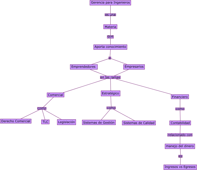 Este Cmap, tiene información relacionada con: Gerencia María Clara, Empresarios en las ramas Comercial, Empresarios en las ramas Financiero, Comercial como Legislación, Financiero como Contabilidad, Emprendedores en las ramas Financiero, Emprendedores en las ramas Comercial, Estratégico como Sistemas de Calidad, Aporta conocimiento a Emprendedores, Gerencia para Ingenieros es una Materia, Empresarios en las ramas Estratégico, Contabilidad relacionado con manejo del dinero, manejo del dinero es Ingresos vs Egresos, Comercial como TLC, Estratégico como Sistemas de Gestión, Emprendedores en las ramas Estratégico, Aporta conocimiento a Empresarios, Comercial como Derecho Comercial, Materia que Aporta conocimiento