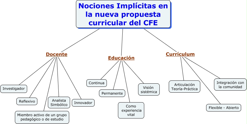 Este Cmap, tiene información relacionada con: Nociones implícitas, Nociones Implícitas en la nueva propuesta curricular del CFE Currículum Flexible - Abierto, Nociones Implícitas en la nueva propuesta curricular del CFE Currículum Integración con la comunidad, Nociones Implícitas en la nueva propuesta curricular del CFE Docente Reflexivo, Nociones Implícitas en la nueva propuesta curricular del CFE Educación Continua, Nociones Implícitas en la nueva propuesta curricular del CFE Docente Innovador, Nociones Implícitas en la nueva propuesta curricular del CFE Educación Permanente, Nociones Implícitas en la nueva propuesta curricular del CFE Docente Analista Simbólico, Nociones Implícitas en la nueva propuesta curricular del CFE Educación Como experiencia vital, Nociones Implícitas en la nueva propuesta curricular del CFE Educación Visión sistémica, Nociones Implícitas en la nueva propuesta curricular del CFE Currículum Articulación Teoría-Práctica, Nociones Implícitas en la nueva propuesta curricular del CFE Docente Miembro activo de un grupo pedagógico o de estudio, Nociones Implícitas en la nueva propuesta curricular del CFE Docente Investigador
