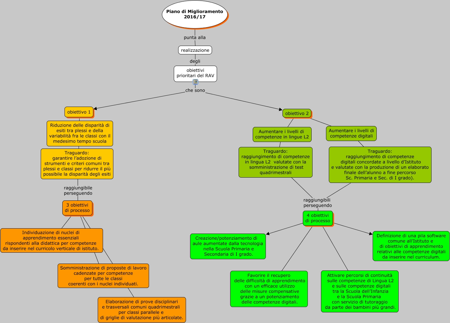 Questa Cmap, creata con IHMC CmapTools, contiene informazioni relative a: PDM 16 17, realizzazione degli obiettivi prioritari del RAV, Traguardo: garantire l’adozione di strumenti e criteri comuni tra plessi e classi per ridurre il più possibile la disparità degli esiti raggiungibile perseguendo 3 obiettivi di processo, obiettivo 1 Riduzione delle disparità di esiti tra plessi e della variabilità fra le classi con il medesimo tempo scuola, obiettivo 2 Aumentare i livelli di competenze digitali, obiettivo 2 Aumentare i livelli di competenze in lingue L2, Aumentare i livelli di competenze in lingue L2 Traguardo: raggiungimento di competenze in lingua L2 valutate con la somministrazione di test quadrimestrali, 4 obiettivi di processo Creazione/potenziamento di aule aumentate dalla tecnologia nella Scuola Primaria e Secondaria di I grado., 4 obiettivi di processo Attivare percorsi di continuità sulle competenze di Lingua L2 e sulle competenze digitali tra la Scuola dell’Infanzia e la Scuola Primaria con servizio di tutoraggio da parte dei bambini più grandi., Traguardo: raggiungimento di competenze in lingua L2 valutate con la somministrazione di test quadrimestrali raggiungibili perseguendo 4 obiettivi di processo, Piano di Miglioramento 2016/17 punta alla realizzazione, 3 obiettivi di processo Individuazione di nuclei di apprendimento essenziali rispondenti alla didattica per competenze da inserire nel curricolo verticale di istituto., 3 obiettivi di processo Elaborazione di prove disciplinari e trasversali comuni quadrimestrali per classi parallele e di griglie di valutazione più articolate., Traguardo: raggiungimento di competenze digitali concordate a livello d’Istituto e valutate con la produzione di un elaborato finale dell’alunno a fine percorso Sc. Primaria e Sec. di I grado). raggiungibili perseguendo 4 obiettivi di processo, 3 obiettivi di processo Somministrazione di proposte di lavoro cadenzate per competenze per tutte le classi coerenti con i nuclei individuati., 4 obiettivi di processo Definizione di una pila software comune all’Istituto e di obiettivi di apprendimento relativi alle competenze digitali da inserire nel curriculum., obiettivi prioritari del RAV che sono obiettivo 1, 4 obiettivi di processo Favorire il recupero delle difficoltà di apprendimento con un efficace utilizzo delle misure compensative grazie a un potenziamento delle competenze digitali., Aumentare i livelli di competenze digitali Traguardo: raggiungimento di competenze digitali concordate a livello d’Istituto e valutate con la produzione di un elaborato finale dell’alunno a fine percorso Sc. Primaria e Sec. di I grado)., obiettivi prioritari del RAV che sono obiettivo 2, Riduzione delle disparità di esiti tra plessi e della variabilità fra le classi con il medesimo tempo scuola Traguardo: garantire l’adozione di strumenti e criteri comuni tra plessi e classi per ridurre il più possibile la disparità degli esiti