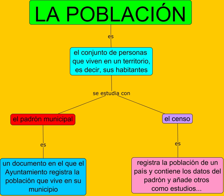 Este Cmap, tiene información relacionada con: La población, el censo es registra la población de un país y contiene los datos del padrón y añade otros como estudios..., el conjunto de personas que viven en un territorio, es decir, sus habitantes se estudia con el censo, LA POBLACIÓN es el conjunto de personas que viven en un territorio, es decir, sus habitantes, el padrón municipal es un documento en el que el Ayuntamiento registra la población que vive en su municipio, el conjunto de personas que viven en un territorio, es decir, sus habitantes se estudia con el padrón municipal