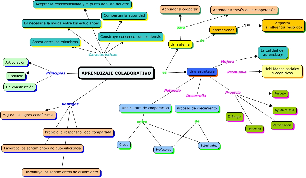 Este Cmap, tiene información relacionada con: Aprendizaje colaborativo - USMP-MAES, Una estrategia Propicia Reflexión, Una estrategia Propicia Respeto, Una cultura de cooperación entre Profesores, Una estrategia Propicia Diálogo, APRENDIZAJE COLABORATIVO Características Es necesaria la ayuda entre los estudiantes, Proceso de crecimiento de Profesores, APRENDIZAJE COLABORATIVO Principios Co-construcción, Un sistema de interacciones, Un sistema para Aprender a través de la cooperación, APRENDIZAJE COLABORATIVO es Una estrategia, Un sistema para Aprender a cooperar, APRENDIZAJE COLABORATIVO Características Construye consenso con los demás, Una estrategia Mejora La calidad del aprendizaje, APRENDIZAJE COLABORATIVO Características Comparten la autoridad, Una cultura de cooperación entre Grupo, APRENDIZAJE COLABORATIVO Ventajas Favorece los sentimientos de autosuficiencia, Proceso de crecimiento de Estudiantes, APRENDIZAJE COLABORATIVO Características Aceptar la responsabilidad y el punto de vista del otro, APRENDIZAJE COLABORATIVO Ventajas Disminuye los sentimientos de aislamiento, Una estrategia Potencia Una cultura de cooperación