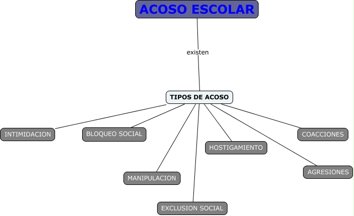 Este Cmap, tiene información relacionada con: Subproducto 1.1 2-01, TIPOS DE ACOSO EXCLUSION SOCIAL, ACOSO ESCOLAR existen TIPOS DE ACOSO, TIPOS DE ACOSO AGRESIONES, TIPOS DE ACOSO INTIMIDACION, TIPOS DE ACOSO MANIPULACION, TIPOS DE ACOSO COACCIONES, TIPOS DE ACOSO HOSTIGAMIENTO, TIPOS DE ACOSO BLOQUEO SOCIAL