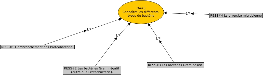 Cette carte de concepts créée avec IHMC CmapTools traite de: OA3, RESS#2 Les bactéries Gram négatif (autre que Proteobacteria). I/P OA#3 Connaître les différents types de bactérie, RESS#1 L'embranchement des Proteobacteria. I/P OA#3 Connaître les différents types de bactérie, RESS#4 La diversité microbienne I/P OA#3 Connaître les différents types de bactérie, RESS#3 Les bactéries Gram positif. I/P OA#3 Connaître les différents types de bactérie