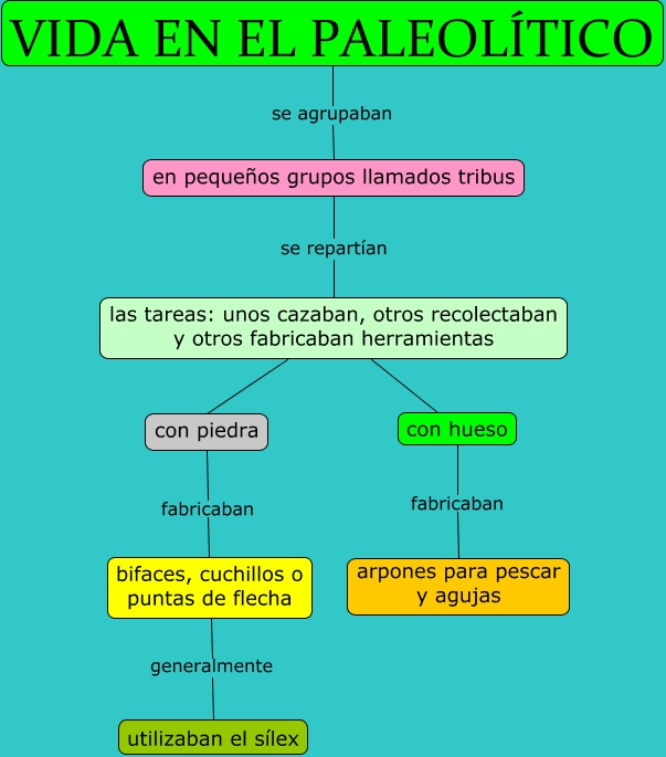 Este Cmap, tiene información relacionada con: En el paleolítico, con piedra fabricaban bifaces, cuchillos o puntas de flecha, en pequeños grupos llamados tribus se repartían las tareas: unos cazaban, otros recolectaban y otros fabricaban herramientas, con hueso fabricaban arpones para pescar y agujas, VIDA EN EL PALEOLÍTICO se agrupaban en pequeños grupos llamados tribus, bifaces, cuchillos o puntas de flecha generalmente utilizaban el sílex, las tareas: unos cazaban, otros recolectaban y otros fabricaban herramientas con piedra, las tareas: unos cazaban, otros recolectaban y otros fabricaban herramientas con hueso