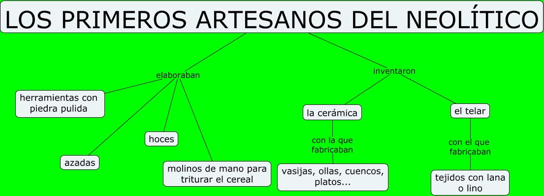 Este Cmap, tiene información relacionada con: Los primeros artesanos del neolítico, LOS PRIMEROS ARTESANOS DEL NEOLÍTICO inventaron el telar, LOS PRIMEROS ARTESANOS DEL NEOLÍTICO elaboraban herramientas con piedra pulida, LOS PRIMEROS ARTESANOS DEL NEOLÍTICO elaboraban molinos de mano para triturar el cereal, LOS PRIMEROS ARTESANOS DEL NEOLÍTICO elaboraban azadas, el telar con el que fabricaban tejidos con lana o lino, LOS PRIMEROS ARTESANOS DEL NEOLÍTICO elaboraban hoces, la cerámica con la que fabricaban vasijas, ollas, cuencos, platos..., LOS PRIMEROS ARTESANOS DEL NEOLÍTICO inventaron la cerámica