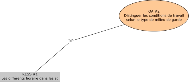 Cette carte de concepts créée avec IHMC CmapTools traite de: OA 2, OA #2 Distinguer les conditions de travail selon le type de milieu de garde I/P RESS #1 Les différents horaire dans les sg