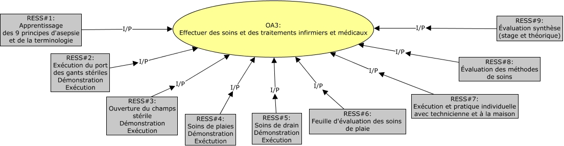 Cette carte de concepts créée avec IHMC CmapTools traite de: Ressource pédagogique OA3, RESS#9: Évaluation synthèse (stage et théorique) I/P OA3: Effectuer des soins et des traitements infirmiers et médicaux, RESS#6: Feuille d'évaluation des soins de plaie I/P OA3: Effectuer des soins et des traitements infirmiers et médicaux, RESS#5: Soins de drain Démonstration Exécution I/P OA3: Effectuer des soins et des traitements infirmiers et médicaux, RESS#2: Exécution du port des gants stériles Démonstration Exécution I/P OA3: Effectuer des soins et des traitements infirmiers et médicaux, RESS#7: Exécution et pratique individuelle avec technicienne et à la maison I/P OA3: Effectuer des soins et des traitements infirmiers et médicaux, RESS#8: Évaluation des méthodes de soins I/P OA3: Effectuer des soins et des traitements infirmiers et médicaux, RESS#4: Soins de plaies Démonstration Exéctution I/P OA3: Effectuer des soins et des traitements infirmiers et médicaux, RESS#3: Ouverture du champs stérile Démonstration Exécution I/P OA3: Effectuer des soins et des traitements infirmiers et médicaux, RESS#1: Apprentissage des 9 principes d'asepsie et de la terminologie I/P OA3: Effectuer des soins et des traitements infirmiers et médicaux