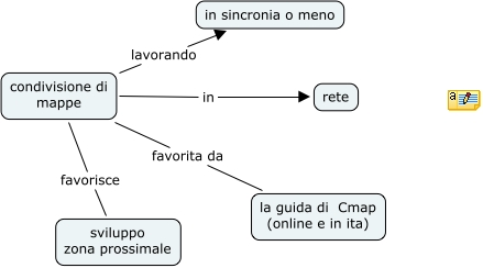 Questa Cmap, creata con IHMC CmapTools, contiene informazioni relative a: appunti26ott, condivisione di mappe favorita da la guida di Cmap (online e in ita), condivisione di mappe lavorando in sincronia o meno, condivisione di mappe favorisce sviluppo zona prossimale, condivisione di mappe in rete