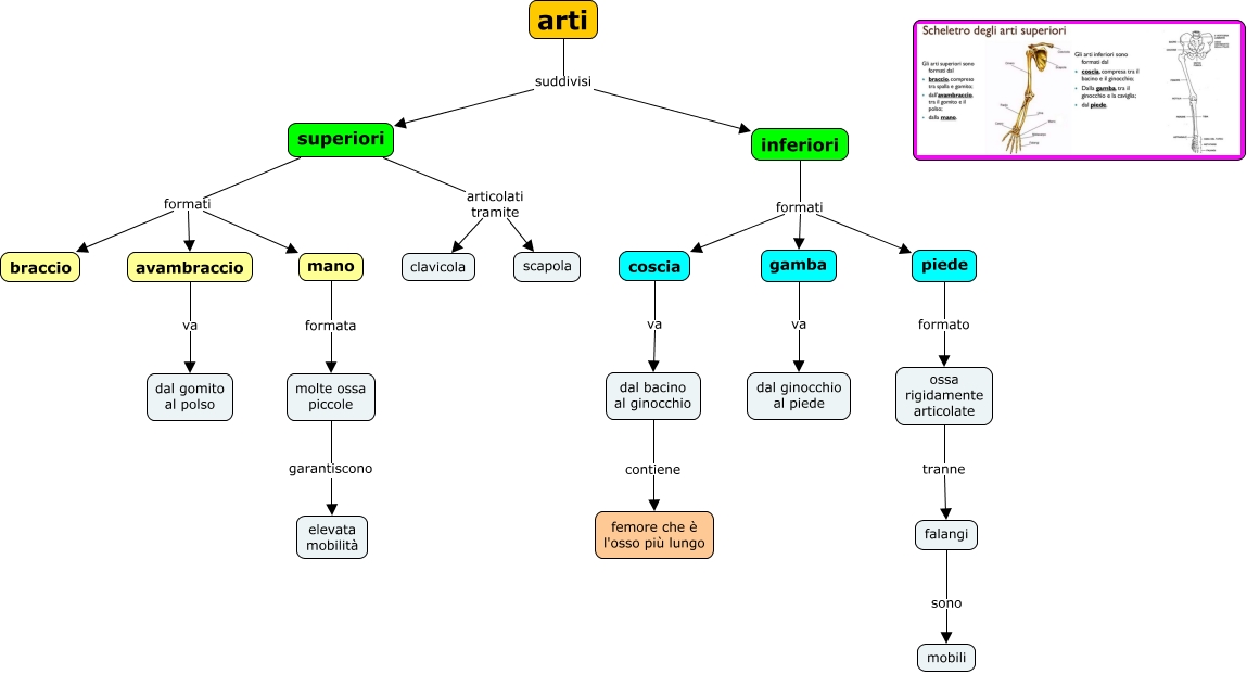 Questa Cmap, creata con IHMC CmapTools, contiene informazioni relative a: 12.6.3 arti, superiori articolati tramite clavicola, inferiori formati piede, superiori formati mano, inferiori formati coscia, gamba va dal ginocchio al piede, arti suddivisi superiori, coscia va dal bacino al ginocchio, mano formata molte ossa piccole, falangi sono mobili, arti suddivisi inferiori, inferiori formati gamba, superiori formati braccio, ossa rigidamente articolate tranne falangi, dal bacino al ginocchio contiene femore che è l'osso più lungo, avambraccio va dal gomito al polso, superiori formati avambraccio, superiori articolati tramite scapola, molte ossa piccole garantiscono elevata mobilità, piede formato ossa rigidamente articolate
