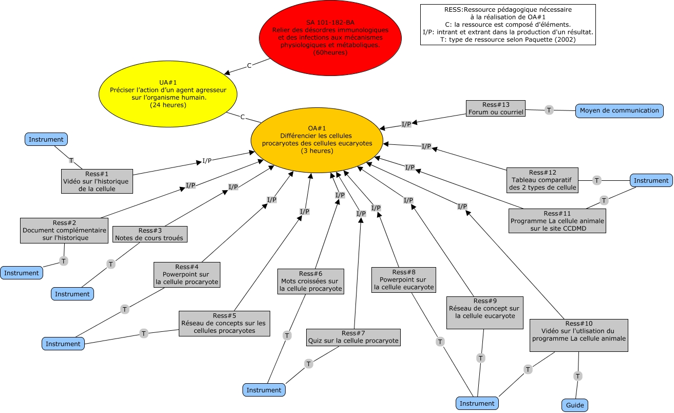 Cette carte de concepts créée avec IHMC CmapTools traite de: travail3, Ress#10 Vidéo sur l'utlisation du programme La cellule animale T Guide, Ress#8 Powerpoint sur la cellule eucaryote T Instrument, Ress#7 Quiz sur la cellule procaryote I/P OA#1 Différencier les cellules procaryotes des cellules eucaryotes (3 heures), Ress#12 Tableau comparatif des 2 types de cellule I/P OA#1 Différencier les cellules procaryotes des cellules eucaryotes (3 heures), Ress#6 Mots croissées sur la cellule procaryote I/P OA#1 Différencier les cellules procaryotes des cellules eucaryotes (3 heures), Ress#2 Document complémentaire sur l'historique I/P OA#1 Différencier les cellules procaryotes des cellules eucaryotes (3 heures), Ress#13 Forum ou courriel I/P OA#1 Différencier les cellules procaryotes des cellules eucaryotes (3 heures), Ress#11 Programme La cellule animale sur le site CCDMD I/P OA#1 Différencier les cellules procaryotes des cellules eucaryotes (3 heures), UA#1 Préciser l’action d’un agent agresseur sur l’organisme humain. (24 heures) C OA#1 Différencier les cellules procaryotes des cellules eucaryotes (3 heures), Ress#12 Tableau comparatif des 2 types de cellule T Instrument, Ress#10 Vidéo sur l'utlisation du programme La cellule animale T Instrument, SA 101-182-BA Relier des désordres immunologiques et des infections aux mécanismes physiologiques et métaboliques. (60heures) C UA#1 Préciser l’action d’un agent agresseur sur l’organisme humain. (24 heures), Ress#4 Powerpoint sur la cellule procaryote T Instrument, Ress#13 Forum ou courriel T Moyen de communication, Ress#7 Quiz sur la cellule procaryote T Instrument, Ress#10 Vidéo sur l'utlisation du programme La cellule animale I/P OA#1 Différencier les cellules procaryotes des cellules eucaryotes (3 heures), Ress#3 Notes de cours troués I/P OA#1 Différencier les cellules procaryotes des cellules eucaryotes (3 heures), Ress#1 Vidéo sur l'historique de la cellule T Instrument, Ress#5 Réseau de concepts sur les cellules procaryotes I/P OA#1 Différencier les cellules procaryotes des cellules eucaryotes (3 heures), Ress#9 Réseau de concept sur la cellule eucaryote I/P OA#1 Différencier les cellules procaryotes des cellules eucaryotes (3 heures)