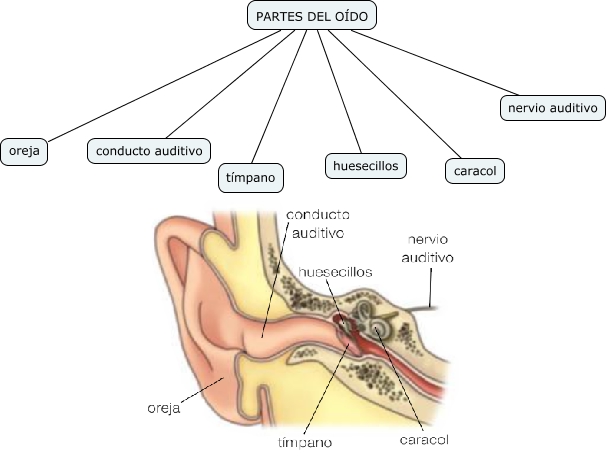 Este Cmap, tiene información relacionada con: Partes del oído, PARTES DEL OÍDO tímpano, PARTES DEL OÍDO oreja, PARTES DEL OÍDO caracol, PARTES DEL OÍDO huesecillos, PARTES DEL OÍDO conducto auditivo, PARTES DEL OÍDO nervio auditivo