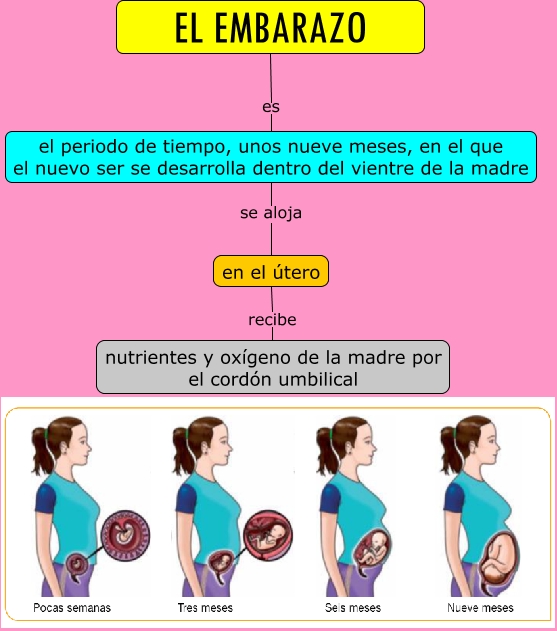 Este Cmap, tiene información relacionada con: El embarazo, el periodo de tiempo, unos nueve meses, en el que el nuevo ser se desarrolla dentro del vientre de la madre se aloja en el útero, EL EMBARAZO es el periodo de tiempo, unos nueve meses, en el que el nuevo ser se desarrolla dentro del vientre de la madre, en el útero recibe nutrientes y oxígeno de la madre por el cordón umbilical